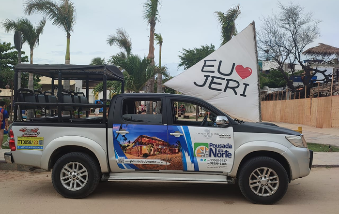 O Passeio Leste em Jardineira é uma forma confortável, segura e econômica de conhecer alguns dos cartões-postais mais famosos de Jericoacoara. A bordo de uma Hilux jardineira 4×4, você compartilha a experiência com outros viajantes ou com seu próprio grupo, percorrendo trilhas de areia e curtindo um roteiro repleto de paisagens incríveis.